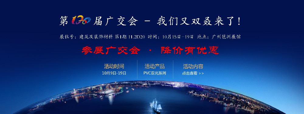 九江賽璐珞將于十月十五日至十九日參加第120屆廣交會,這將是我司近幾年連續多次獲得江西交易團分配的參展名額,我司將會再接再厲,再創佳績!